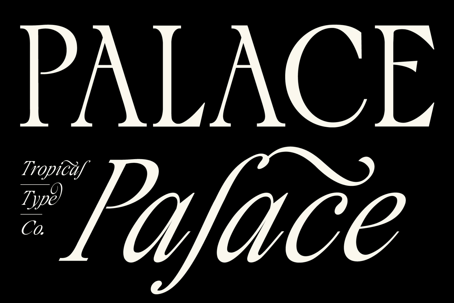 Palace Serif is a classical font with a chic vintage feel. It comes packed with tall caps, italics, catchwords, multiple ampersands and plenty of stylistic flourishes.