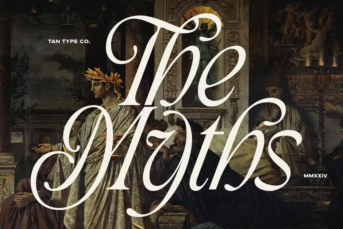 The Myths is a timeless serif with a romantic touch. Equal parts classy and fun, it bridges modern design with a classic sensibility.