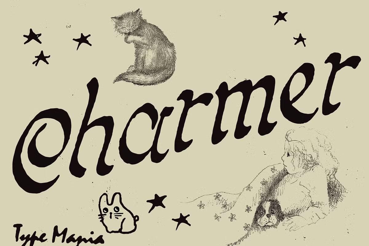 Charmer TM has a personal, handmade feel. Think bedroom pop album covers, zines and indie projects with heart.